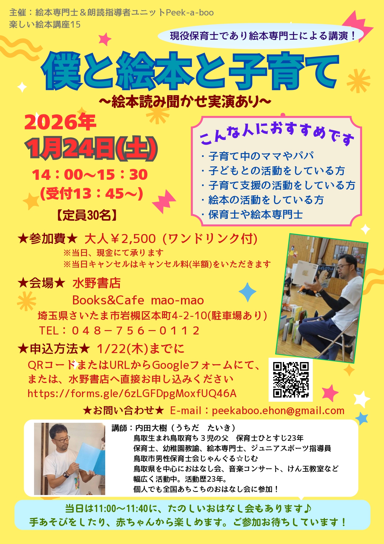 現役保育士であり絵本専門士の、内田大樹さんによる講演!