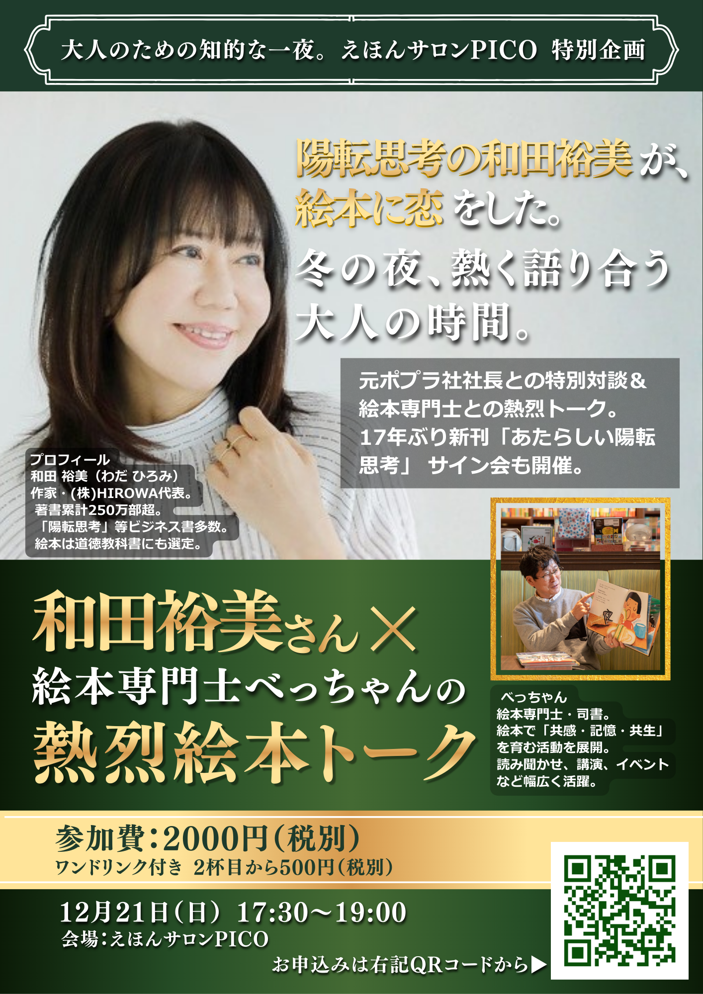 ◆講師:【陽転思考】和田裕美 ×【絵本専門士】べっちゃん(広部和隆)