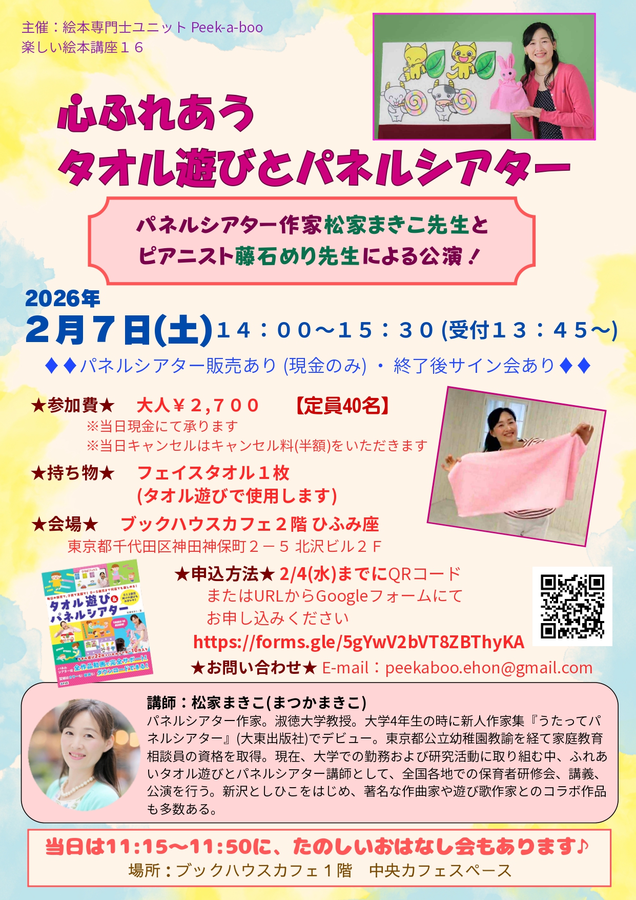 ▼詳しいご案内はこちら◆心ふれあうタオル遊びとパネルシアター