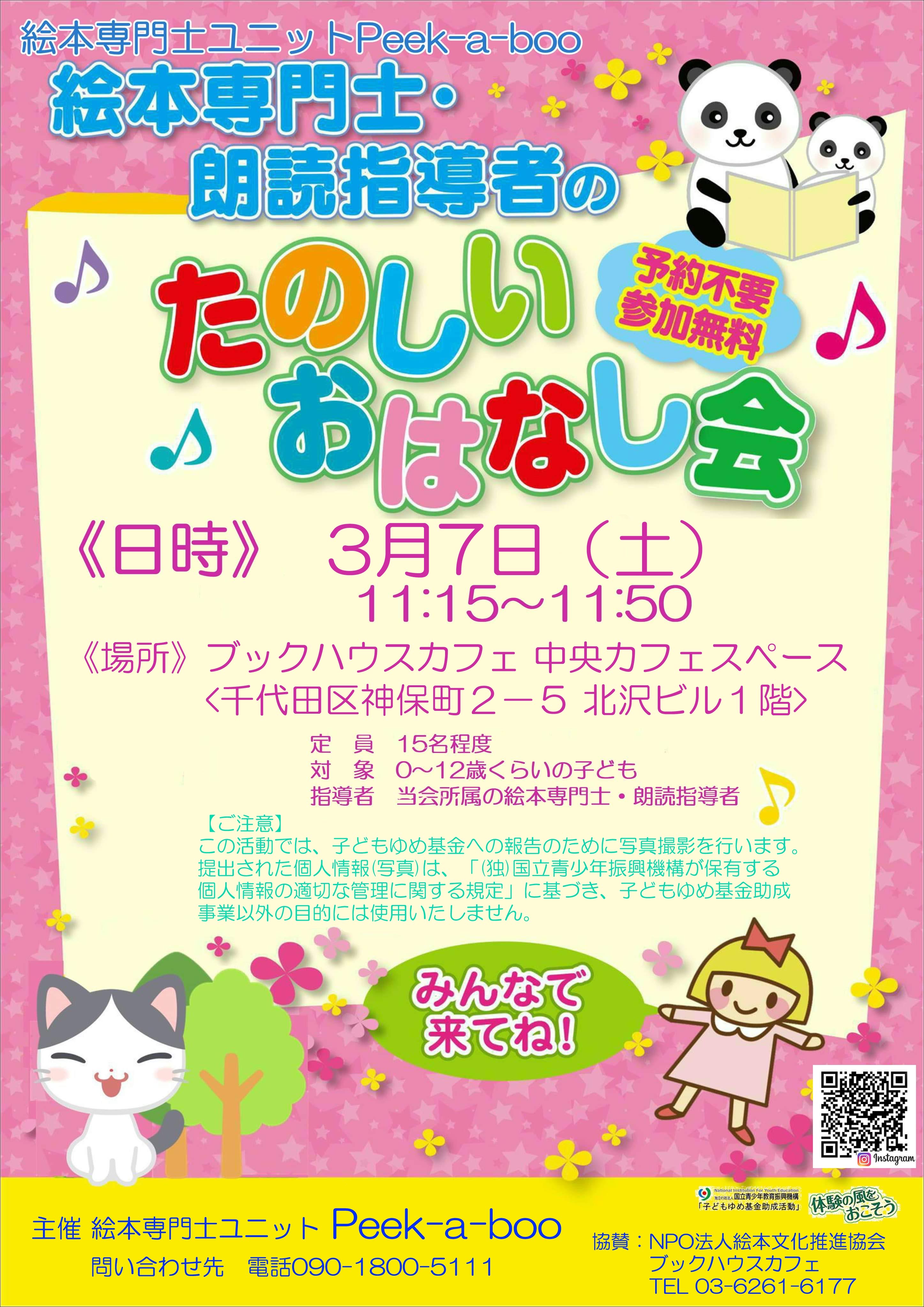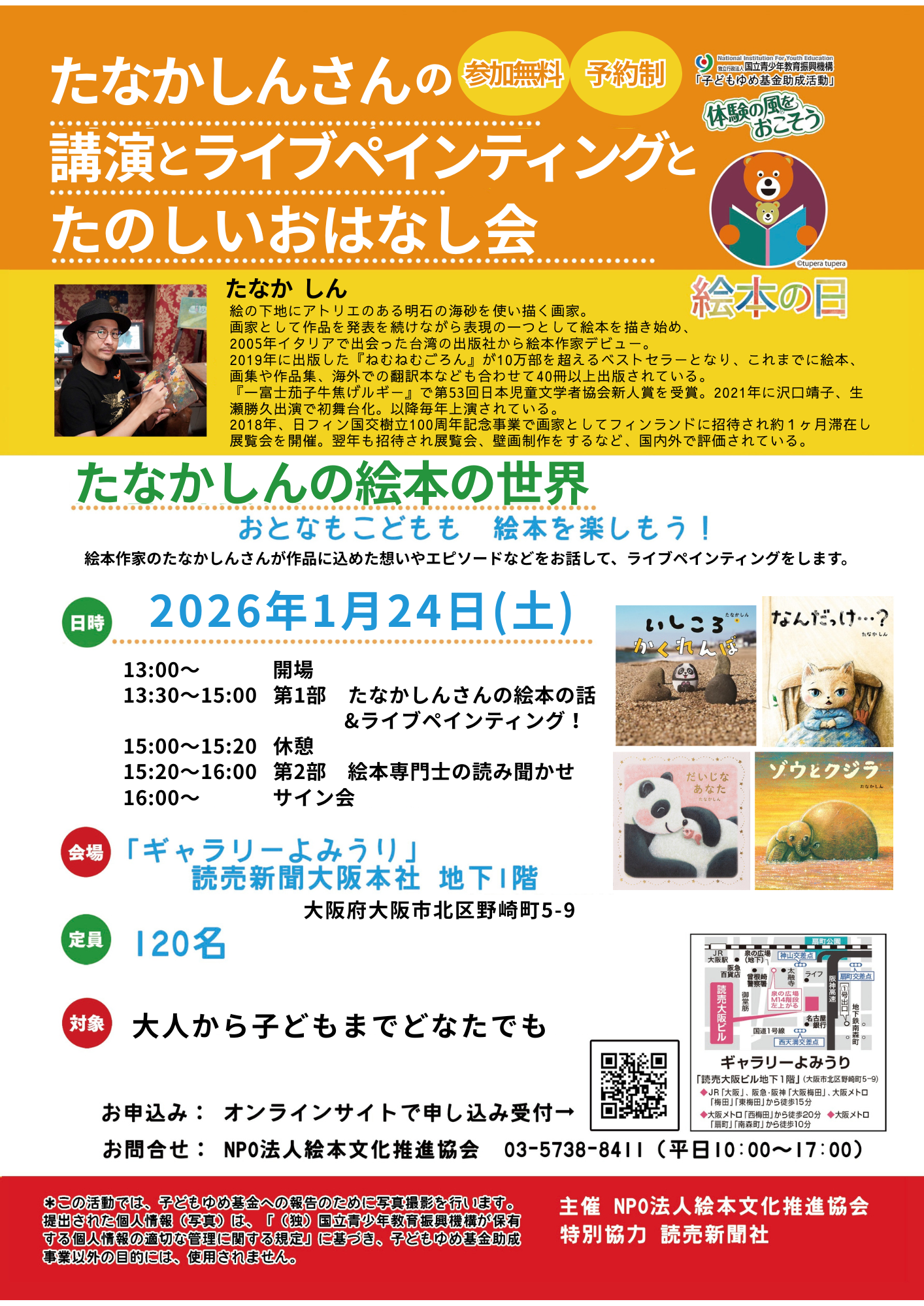 ◆主催・お問合せ:NPO法人絵本文化推進協会03-5738-8411(平日10:00~17:00)